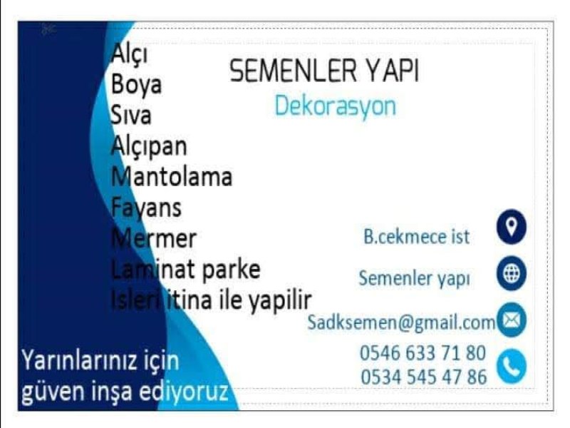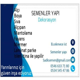 15 yılık deneyimizle hizmet vermekteyiz alçıpan alçı sıva boya vs tamirat tadilat işleri itina ile yapılır